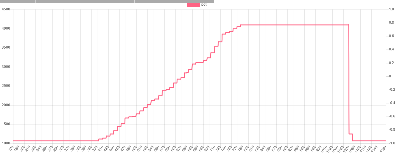 When pressing the Pot-pedal there is not a slowly smooth motion.When slightly pressed It is jumping from low position to High at once.The plot chart is recktangle UP6 DOWN.