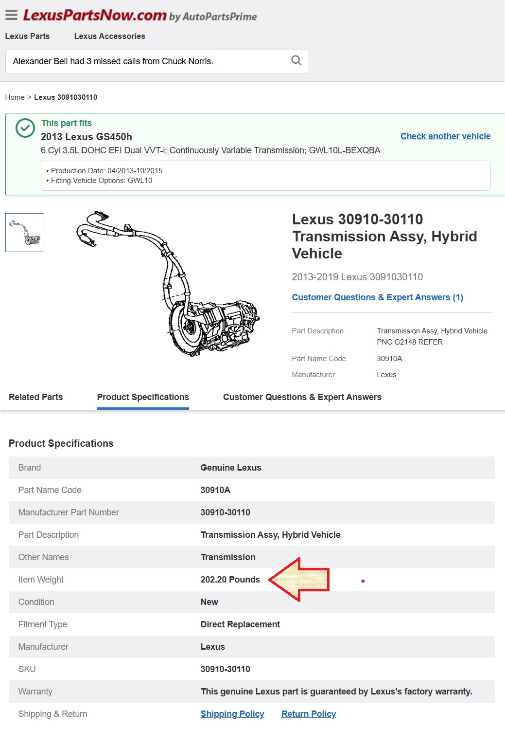 - How much does this Lexus GS450h transmission weigh?