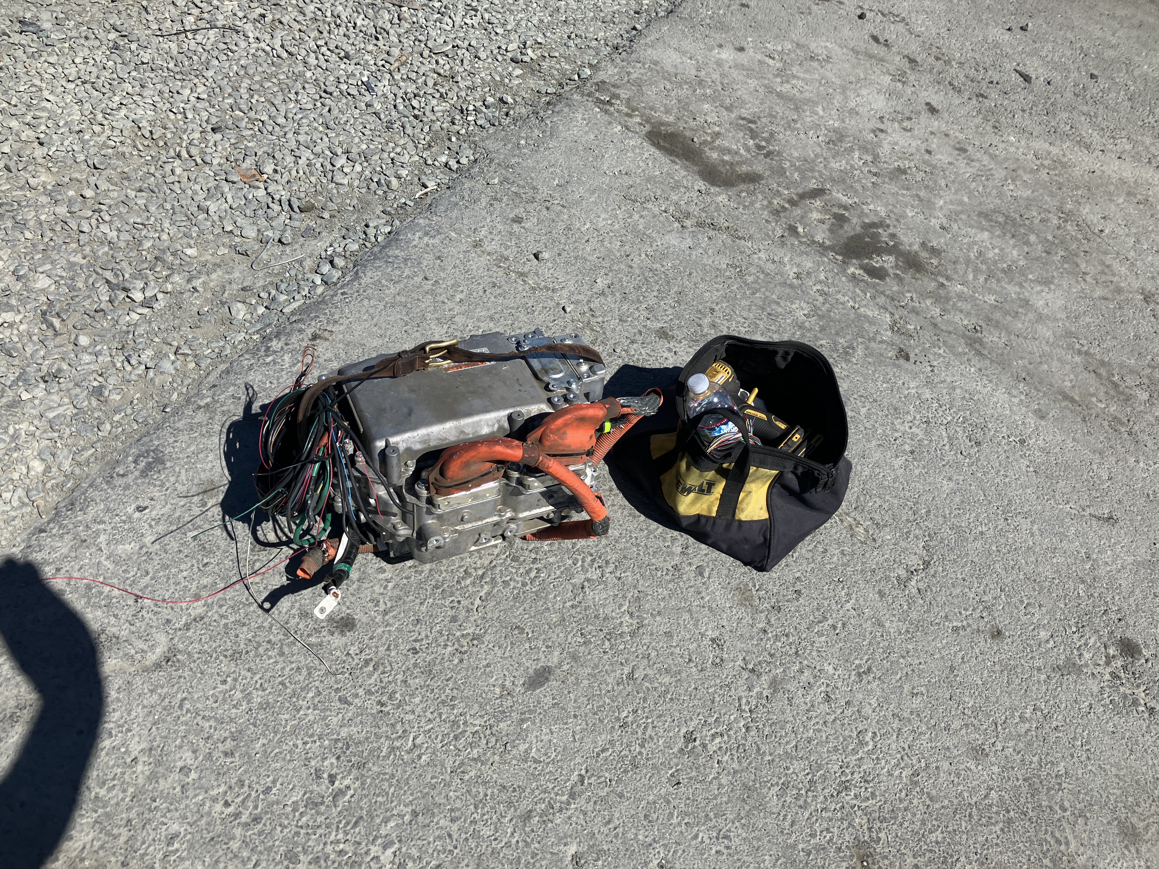 Lexus gearbox tethered to the Lexus inverter, and the Toyota inverter on the floor