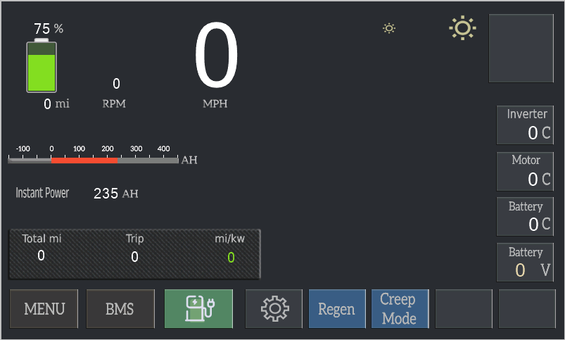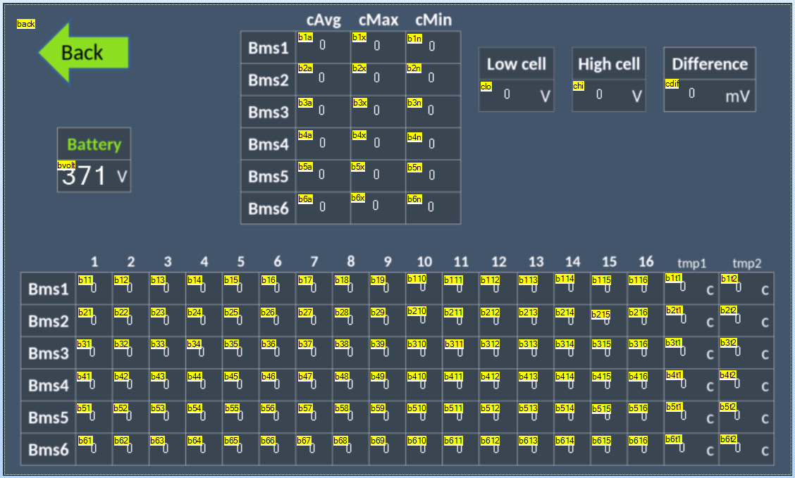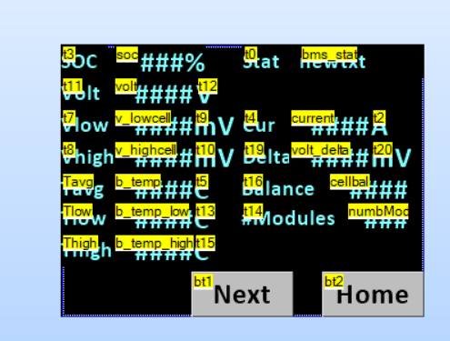 To keep it clean, for the main screen I just display the motor direction, speed and vehicle state - (drive, charge, error) and error pop-ups. Ex. motor temp H (warm)/yellow, HH (hot)/red. Then I have separate details screen for all my hardwares - motor details, battery details, ibooster details, charger details, etc.