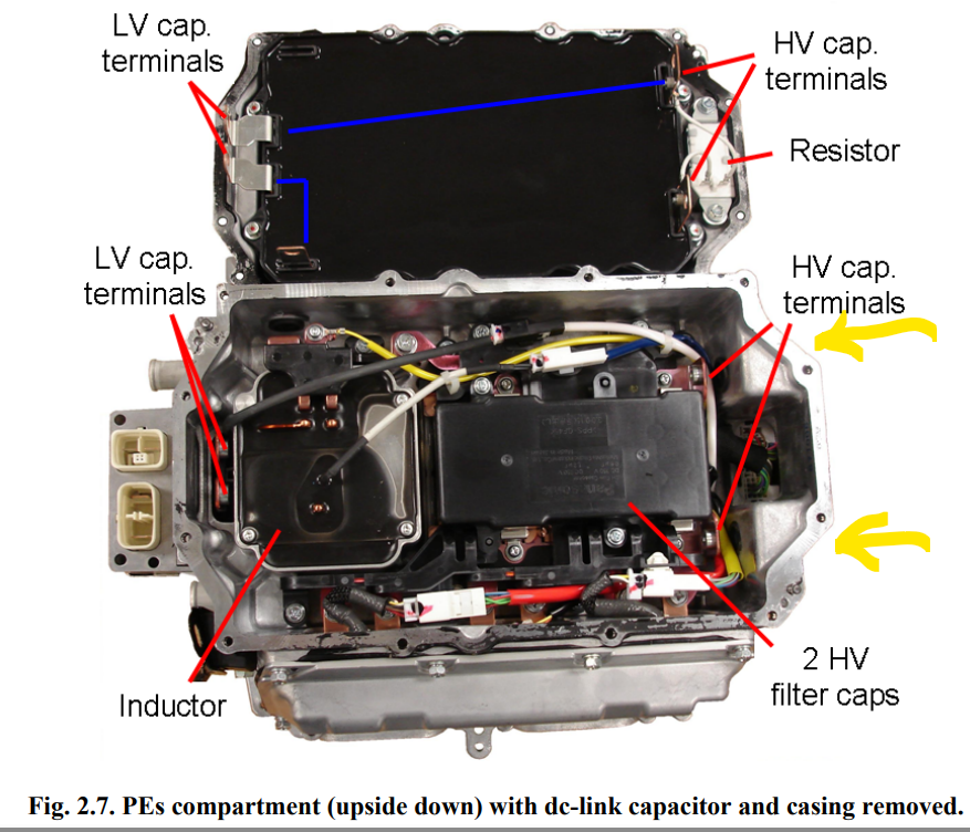 I'm using the LS600H inverter, where I tap into the bus bars is different than on GS450H: I have a GS450H inverter, and connected HV to do a compare, verifying both inverter chassis are grounded together. The problem goes away. Looking closer inside the LS600H 'peep holes' (they were originally covered with a grommet) There is something yellow poking around there that may have been contacting my brass bushings..... might have to disassemble inverter to see what it is: