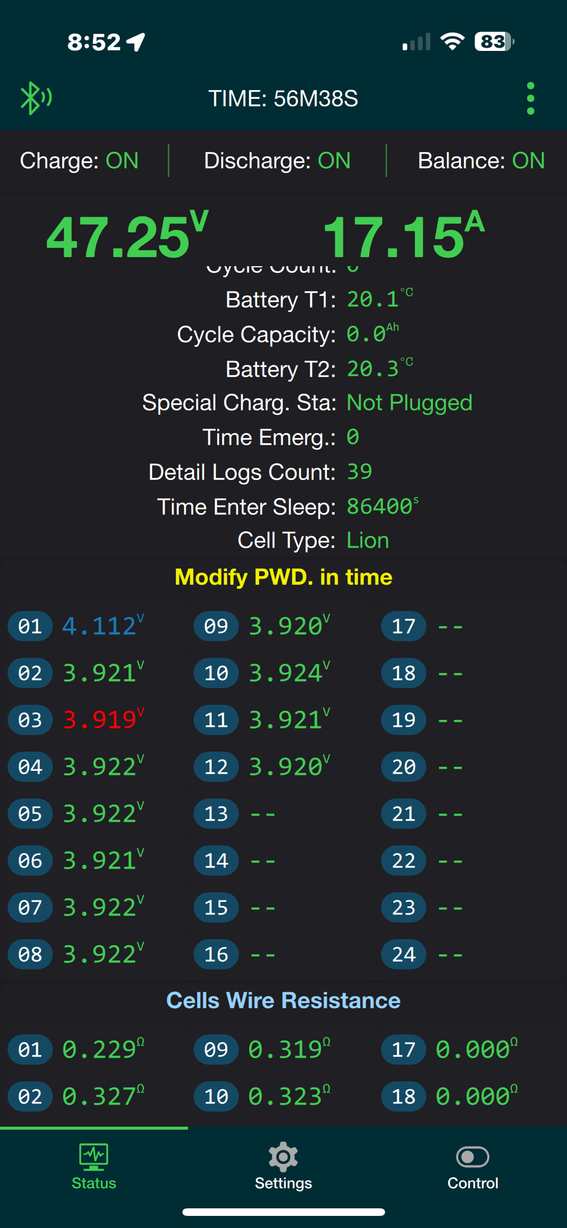 If I take my multimeter and check the cells they are all 3.97 but this reading is not the same in the jk app note cell 1 resistance and voltage. Any thoughts as to why?