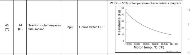 Here's a screen shot of the Nissan leaf manual. You can see the resistance and the temp in both C and F. This is the temp sensor on the motor not the inverter. I don't know which one you are using here. The both might work the same way though?