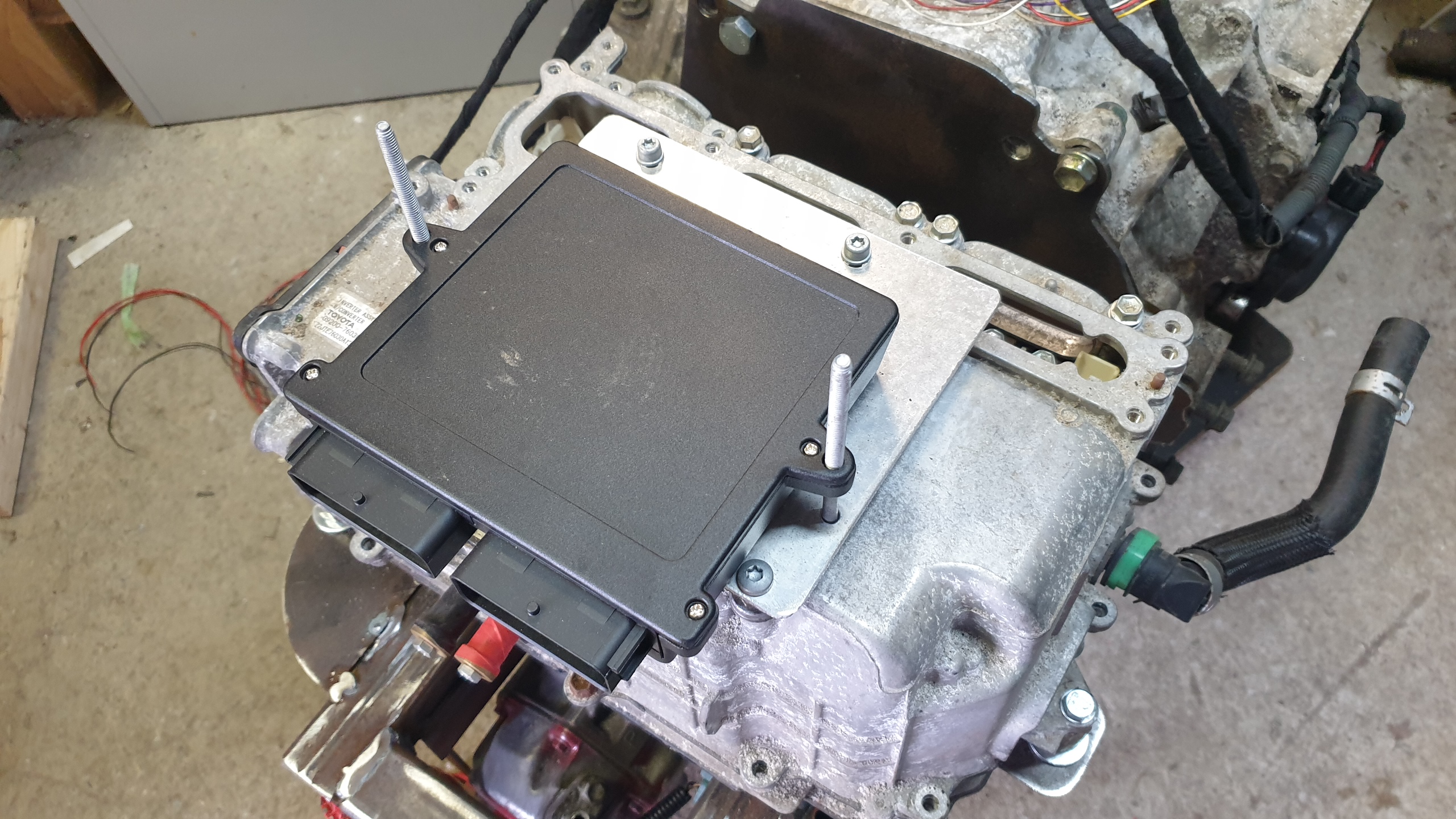 VCU mounting plate for the prius inverter. Will be a double stack on here. Zom and relay box.