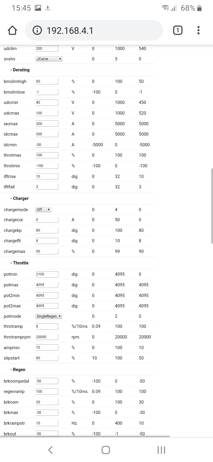 Interesting yet scary thing I've encountered today: if parameter "throtramp" contain a fractional number, there is an issue when vehicle accelerates on its own, but at the time throttle input is at 0% and pot value is lower then potmin parameter. If throtramp is integer, everything is OK.