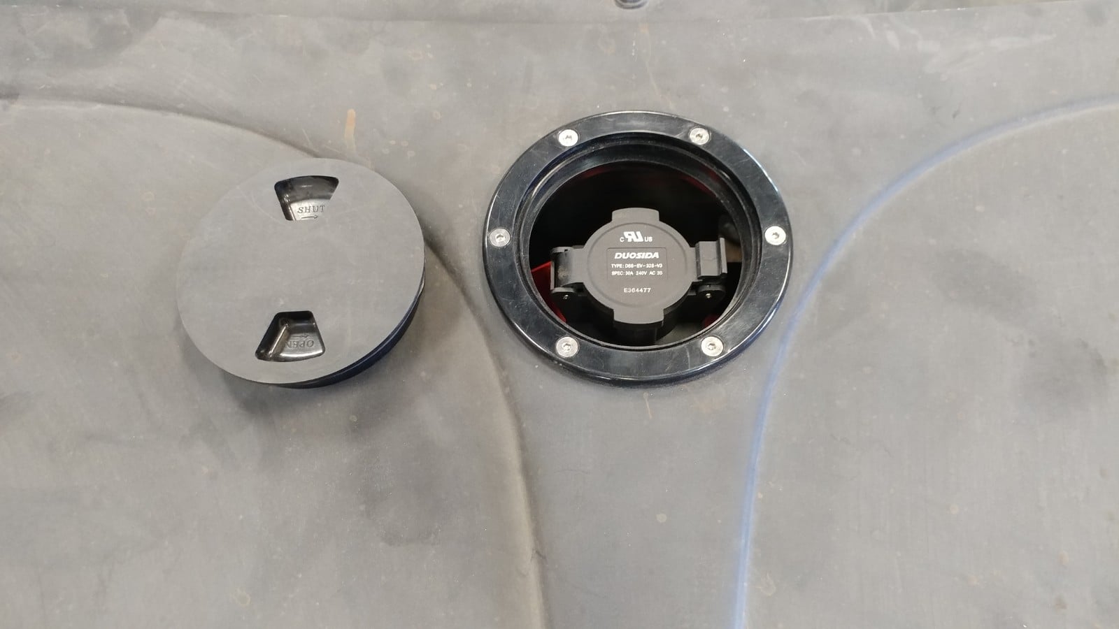 Charger access is through the middle of the hood. The lid shown in the last photo is a 6 inch deck access port that's used in the boating industry. The lid screws in with 2 turns and can be easily reached from either side of the car. I'll be making a 3d printed replacement with vw logo.