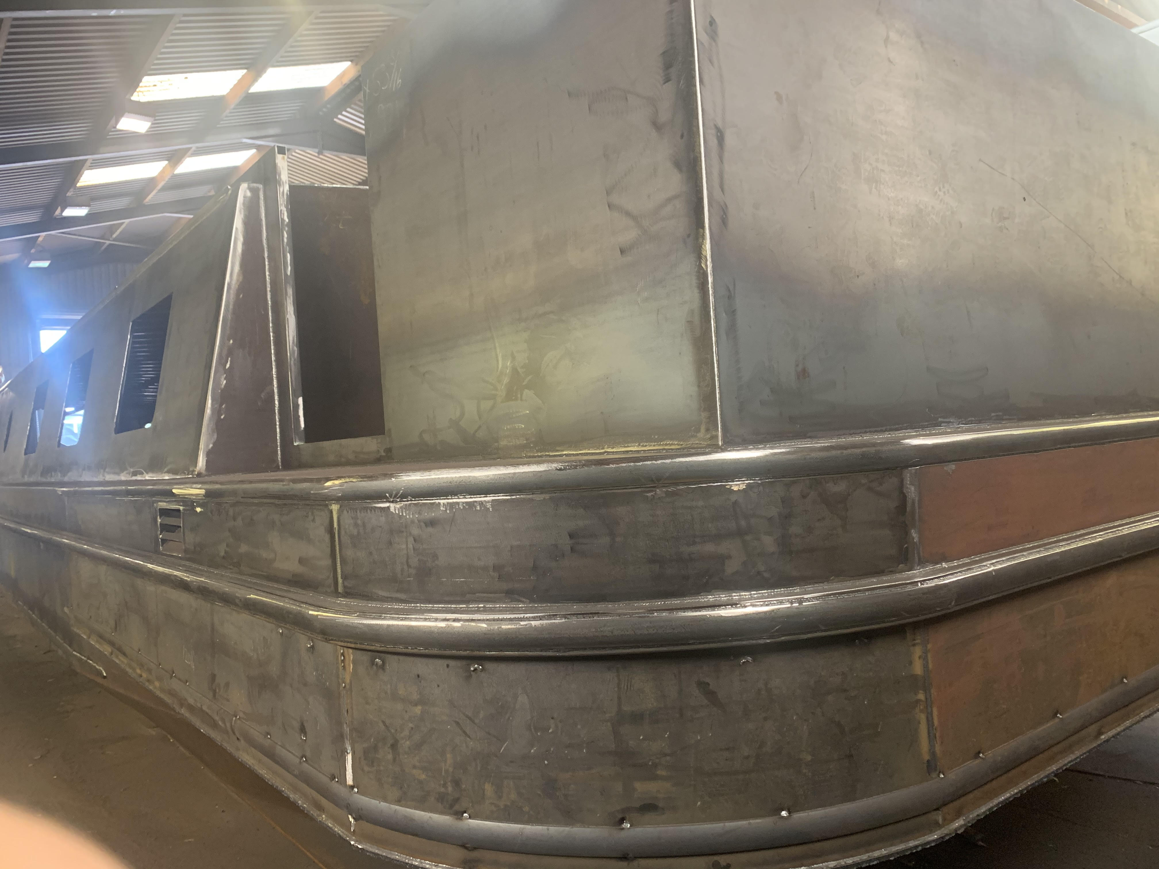 We found a boat builder called BlueWaterBoats in Warickshire and so far they are doing an amazing job on fabricating this 60ftx11ft beast, they are doing all the steelwork, painting, sprayfoam insulation, windows, etc. and I will be doing all the internal electrics, plumbing, heating, panelling and fitout along with the most important bit: the electric propulsion system.