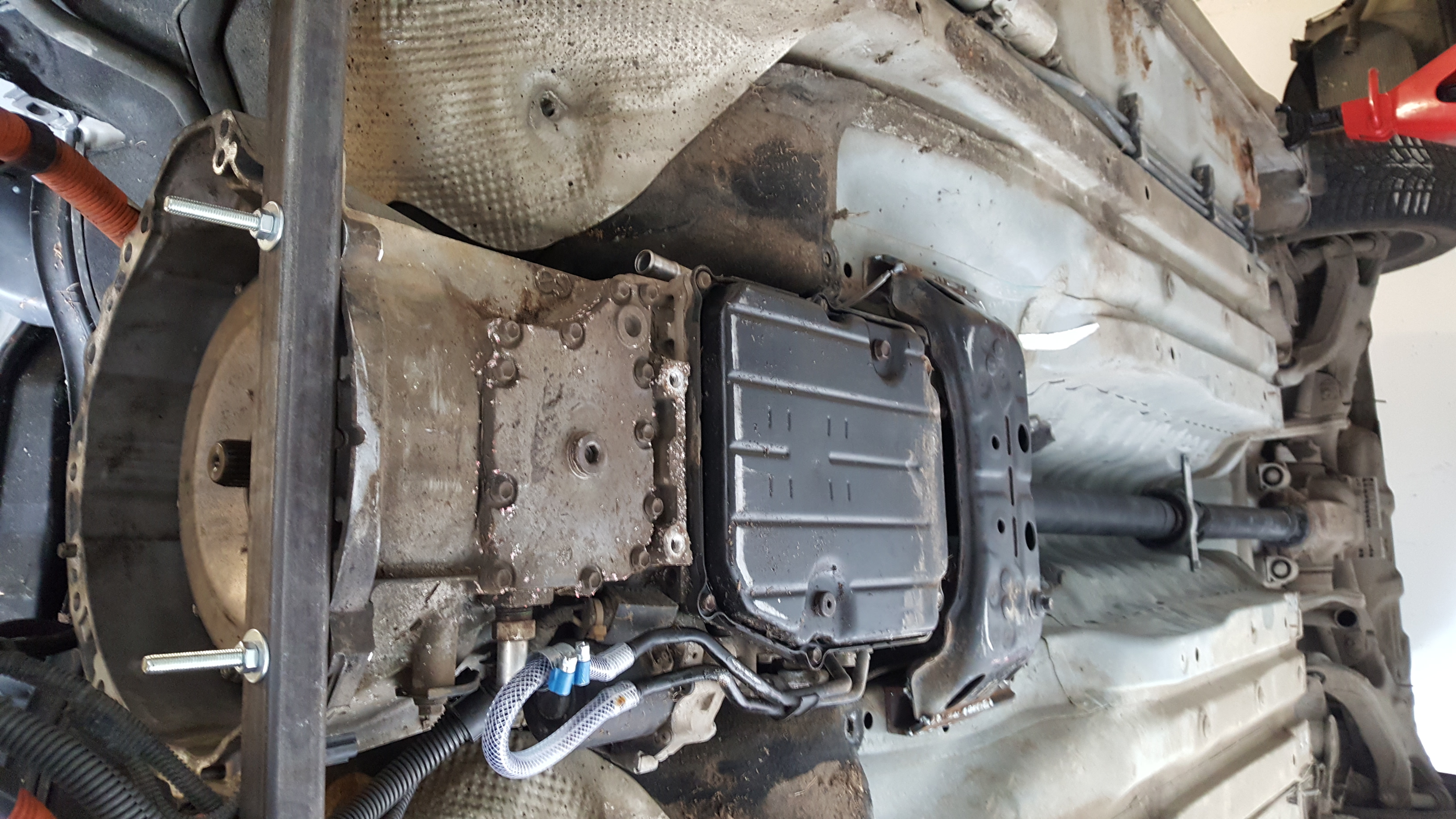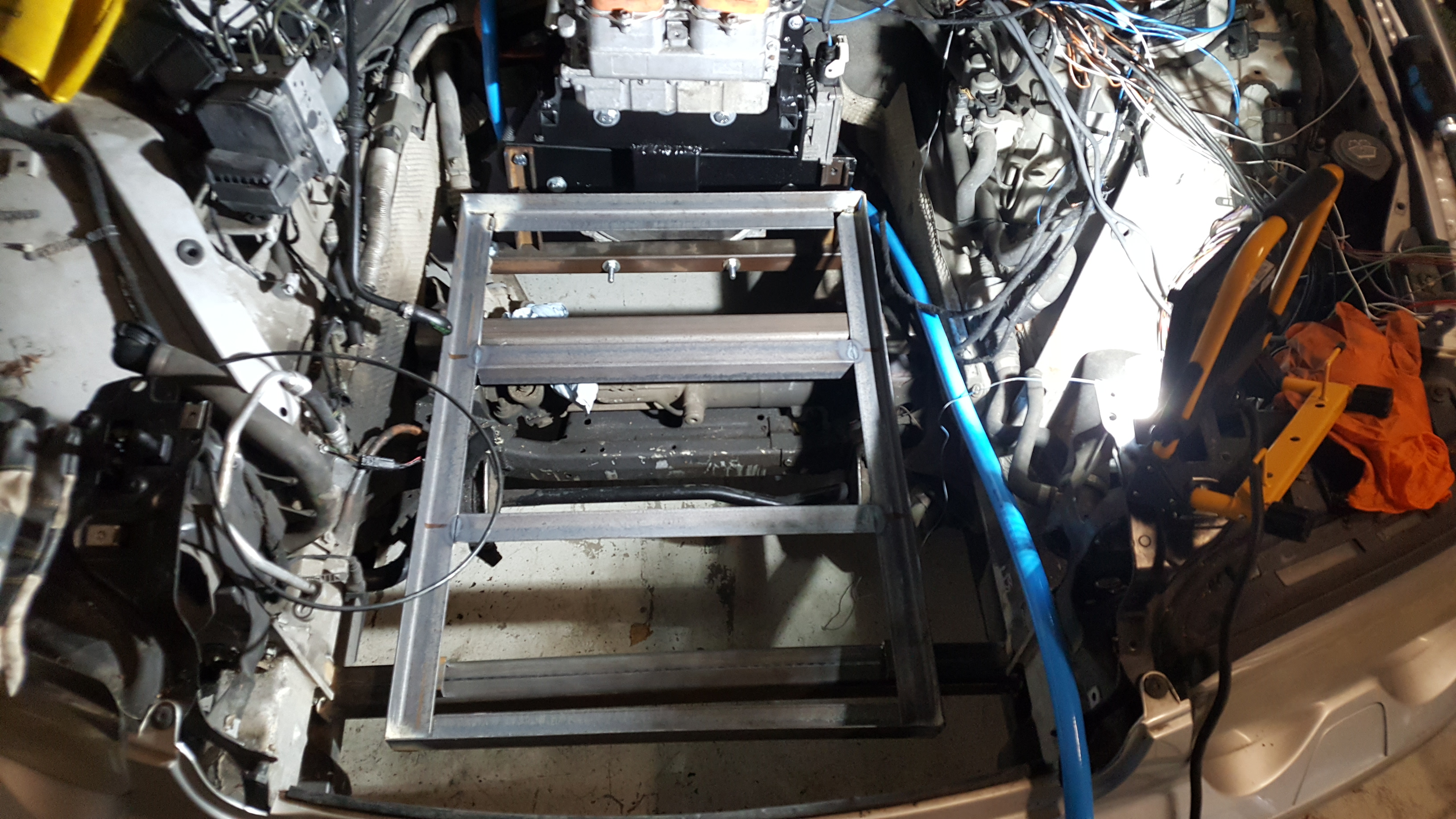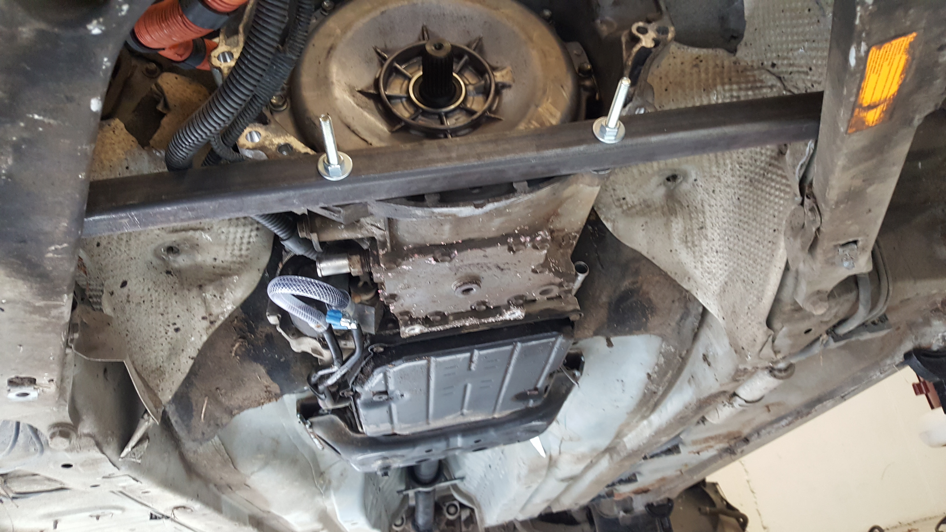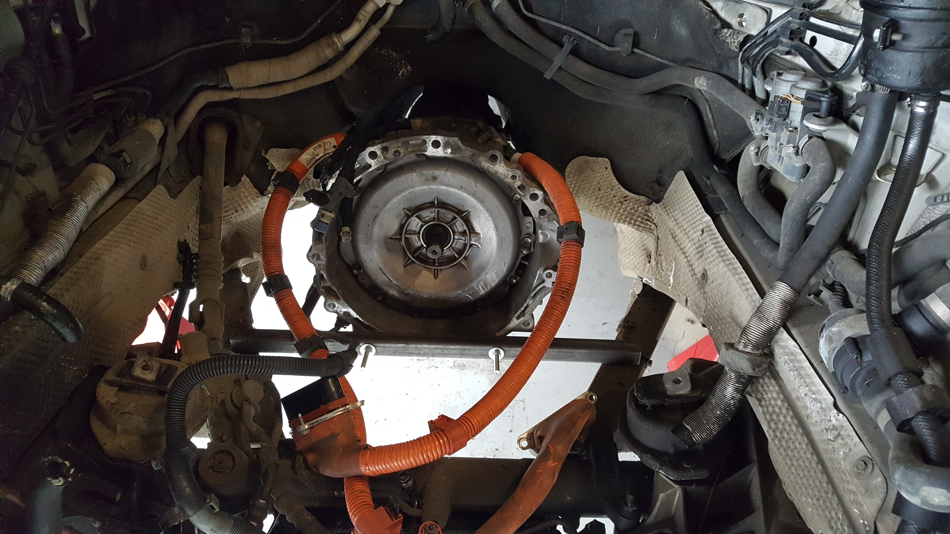 Got the Lexus crossmember modified to fir the bmw mounts. Propshaft re installed and made a temporary front mount. All installed and looks great. Next up is a wheel spin with a Prius inverter.
